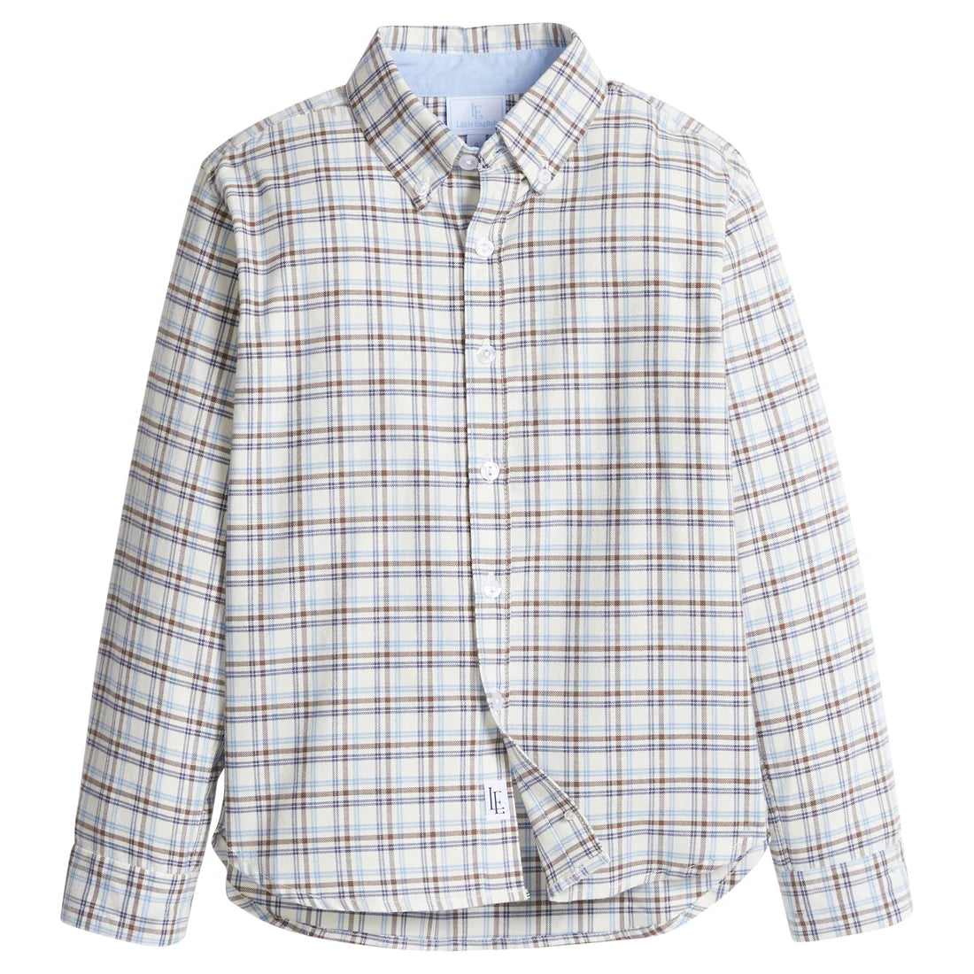 Clarkson is a classic autumnal plaid on a cream base with shades of blues and browns. With a soft, flannel-like feel and weight, this Clarkson Plaid Button Down Shirt is ideal for cooler weather.
