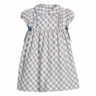 Clarkson is a classic autumnal collection that features a beautiful cream-based plaid with shades of blues and browns. Our new Hazel Dress is a darling option for little girls with our signature peter pan collar, capped sleeves, and gathers at the waist. A ruffled placket at the chest and Stormy Blue Corduroy piping and fixed bows on either side give this dress an extra special touch. Versatile and timeless, it's the perfect option for Thanksgiving celebrations or fall family photos, and siblings can easily coordinate in other pieces from our Clarkson Collection.