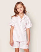 Kid's Twill Pajama Short Set in Pink and White Stripe