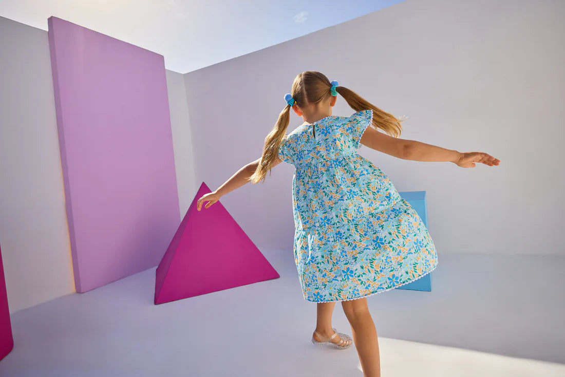 Smita Dress - Cornflower Block Print