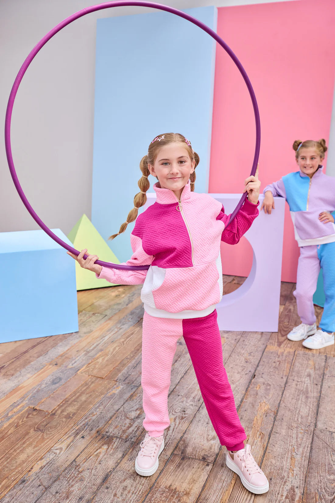 Colorblock Pullover - Pink Quilted Trellis