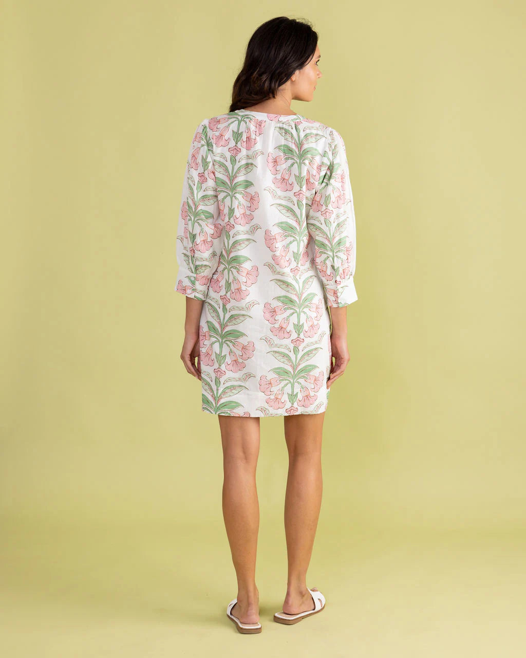 The Paloma Dress is a beautifully versatile piece that combines timeless elegance with modern ease. Featuring a flattering A-line silhouette, this dress offers a relaxed, yet structured fit with three-quarter sleeves and button-front detailing.