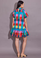 The Willa Dress in the print toile is a playful yet polished statement piece, featuring a bold checkered pattern and a flirty tiered mini skirt. Its short sleeves and high neckline add a touch of elegance to this modern, feminine silhouette.