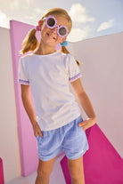 Our Beach Shorts are the perfect staple for Summer! Whether she wears them to the pool or to a picnic, your Bisby girl is sure to love these shorts. Made with a light weight gauzy material and floral embroidery details, they are great for warm weather days. Pairs adorably with our Ricrac Tee in Hydrangea!