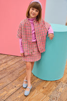 Introducing our Palermo Plaid Mini Skort – an oh-so-sweet skort that adds a touch of elegance to any ensemble. This supercool skort redefines classic tweed with a touch of metallic, making it a must-have addition to her wardrobe. Pair it with a ribbed turtleneck and the coordinating cape for a look perfect for any outing.