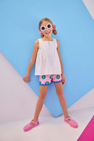 Get ready to bloom this Spring with these adorable RicRac Shorts in Poppy Floral Pink! With vibrant flowers and a touch of vintage charm, these shorts are perfect for the warmer days ahead. The bright blue ric rac hem gives a little extra flair and is the perfect mix of fashion and fun! Complete the look with our Keystone Top.