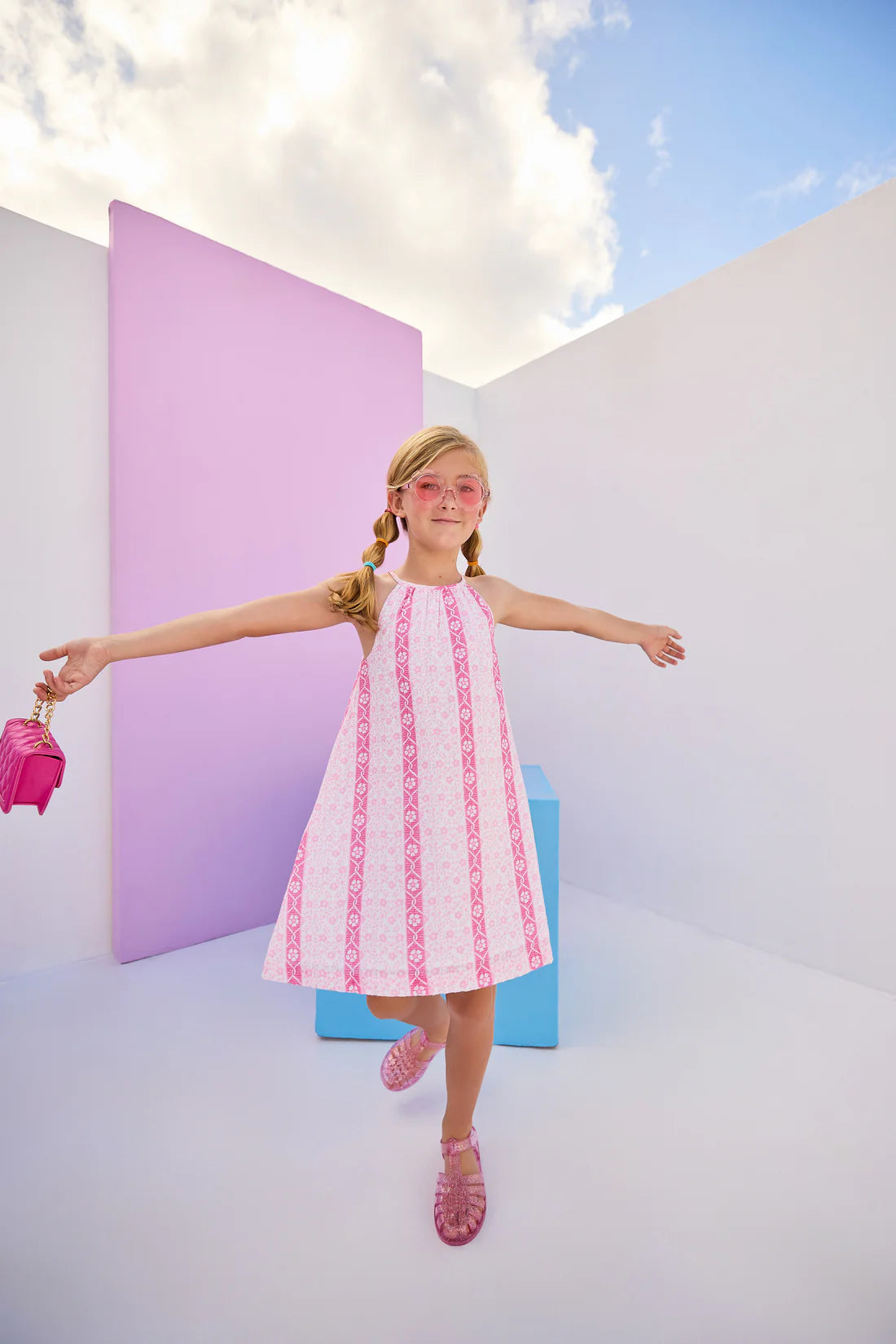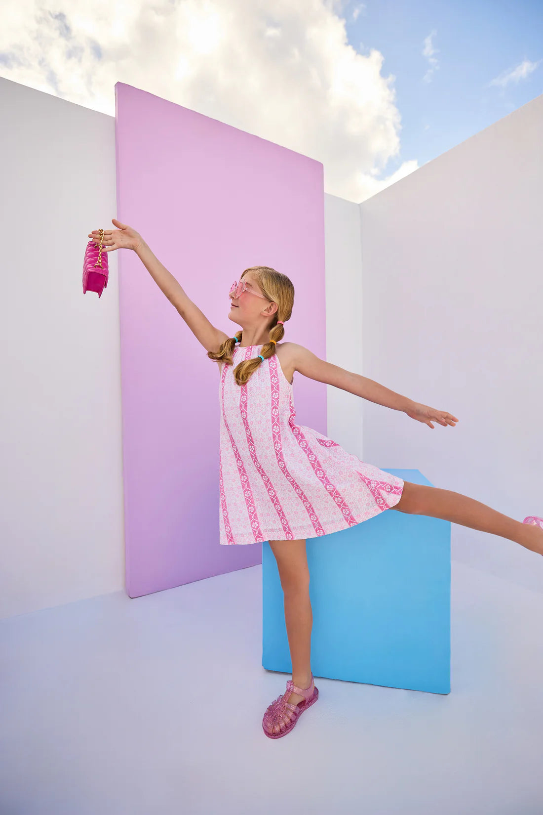Swing Dress - Pink Crinkle Stars