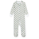 Pima cotton zippered pajama. Sizes 0-3m, 3-6m, 6-9m and 9-12m have feet. Made from 100% Peruvian Cotton. Our pajamas are designed with care and in compliance with CPSC safety standards. They are free from flame-retardant chemicals and are not flame resistant, so they are made to fit snugly.