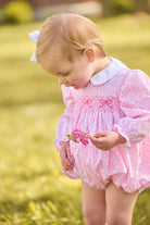 Our much loved Pink Vinings is back in our new Bow-tiful collection! The Smocked Natalie Bubble in this oh so sweet floral features a white peter pan collar, beautiful bow smocking across the chest, and a tie sash in back. Pair with our Knee Highs - Pink Bow to complete the look and big sister can easily coordinate in our matching Smocked Natalie Dress. Perfect for birthdays, family portraits and everything in between, this sweet sister collection is sure to sell out!