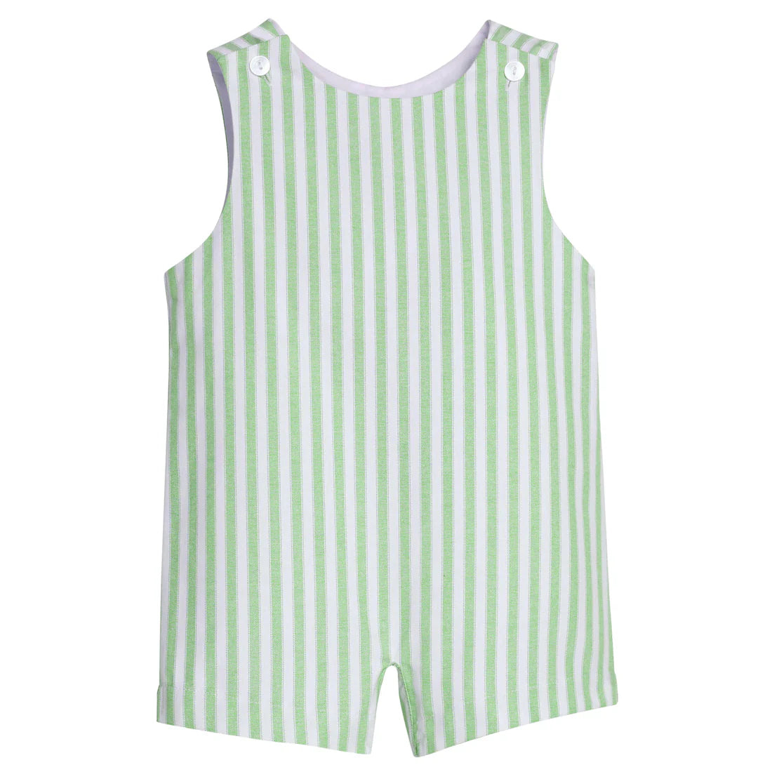 Our Vintage John John is a traditional Little English silhouette with a vintage, slanted cut at the legs. This soft green and white Meriwether Stripe outfit is a classic addition to your little boy's wardrobe. Plus, it coordinates perfectly with our Meriwether Floral!