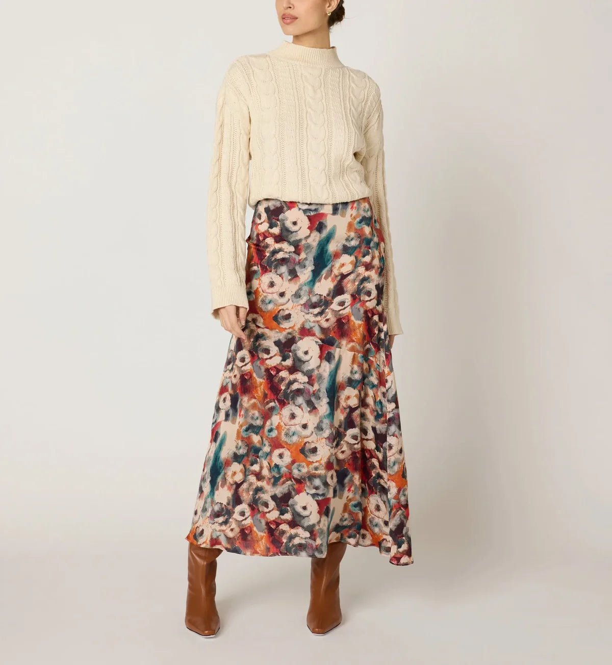 Ethically handmade in India from 100% viscose, the Maria Ankle Skirt in the bold Tamayo print is a standout statement piece. This bias-cut maxi skirt features a flattering diagonal seam and a side zipper closure for a sleek, effortless fit. Perfect for dressing up or down, it adds a touch of artistry to any wardrobe.