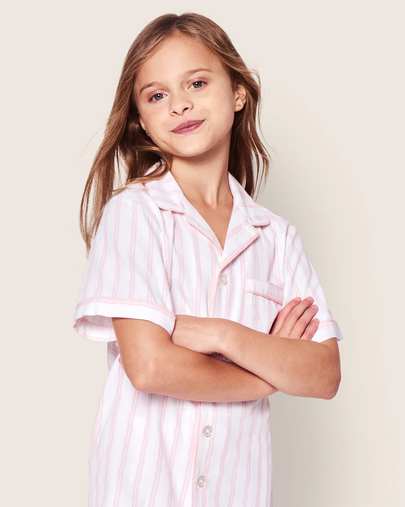 Kid's Twill Pajama Short Set in Pink and White Stripe