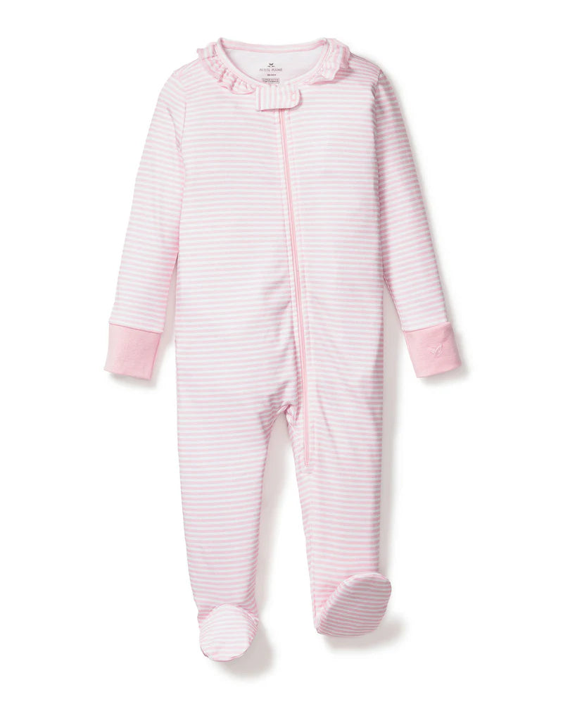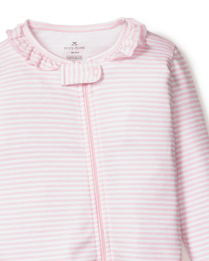 Baby's Pima Ruffle Collar Romper in Pink Stripes