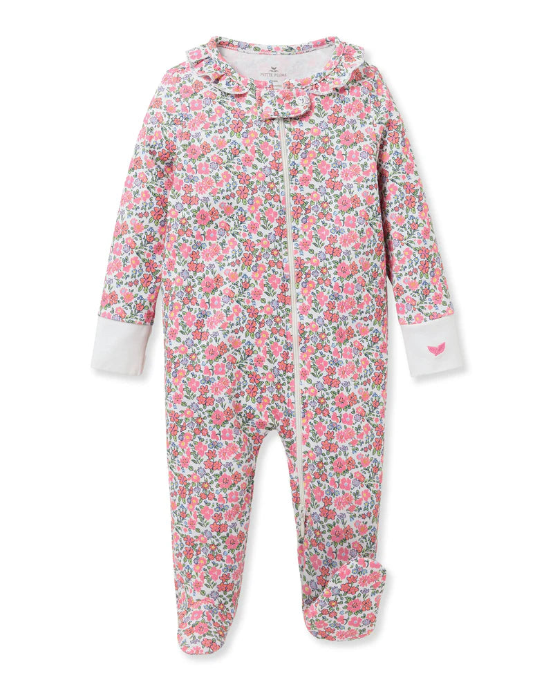 Baby's Pima Ruffle Collar Romper in Blushing Bows