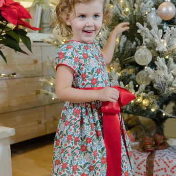 This charming Meadow Dress features a delightful floral print in soft and cheerful tones which is perfect for celebrating the season. With its classic silhouette and gentle gathers along with a super gorgeous bow, it offers comfort and elegance for any occasion. Crafted from lightweight fabric, it’s ideal for special outings or casual gatherings. The timeless design adds a touch of beauty and charm to everyday elegance.
