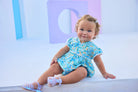 The Positano Bubble is the perfect summer staple for your Bisby baby. In an adorable blue floral the Frangipani Blue is sure to make your little one stand out! With a v-neckline and ruffle sleeves with pom pom detailing this bubble is sure to be a summer favorite!