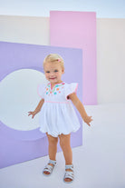 Our Positano Bubble in Multi Embroidery is a little bundle of joy! Adorned with colorful embroidery and delicate ruffle sleeves, it’s the perfect mix of adorable and comfortable. Soft and breezy, it’s ideal for warm days filled with giggles and play. Whether she's napping or exploring, this sweet bubble will keep her looking as cute as can be!