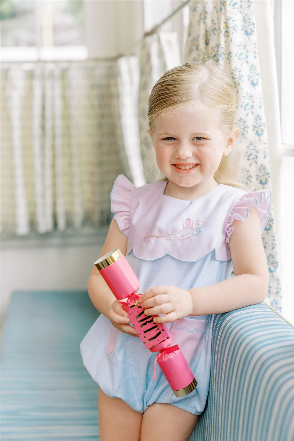 The pink and blue combination is stunning and each scallop is hand-cut by our seamstress. The look is delicate and lovely. The perfect style for any birthday occasion or any other happy day.