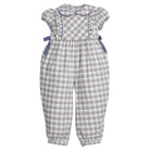 Clarkson is a classic autumnal collection that features a beautiful cream-based plaid with shades of blues and browns. Our new Hazel Romper is a darling option for baby girls with our signature peter pan collar, capped sleeves, and gathers at the waist. A ruffled placket at the chest and Stormy Blue Corduroy piping and fixed bows on either side give this one-piece an extra special touch. Versatile and timeless, it's the perfect option for Thanksgiving celebrations or fall family photos, and siblings can easily coordinate in other pieces from our Clarkson Collection.