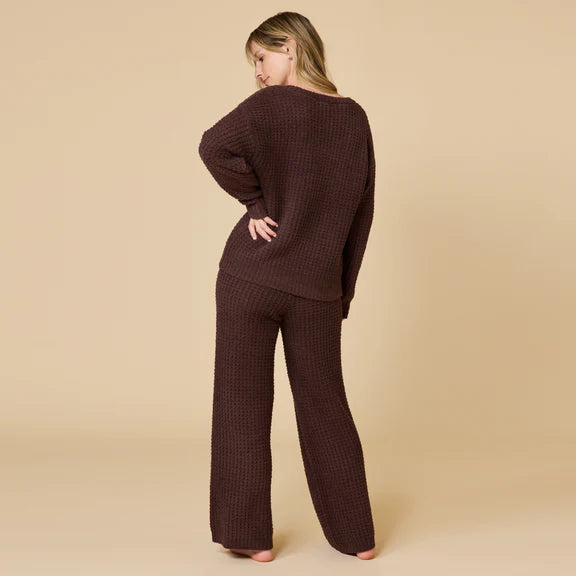 Waffle Marshmallow V-Neck Lounge Set - Espresso