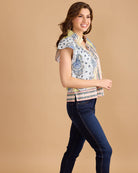 The Em Top is a fun, breezy blouse in our apple bandana print. With flutter sleeves and a cute tie neckline, it's an easy pick for dressing up jeans or pairing with the Marisol Skirt.