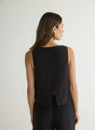 Effortlessly chic, the Sleeveless Boat Neck Split Back top combines minimalist design with unexpected details.