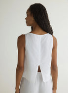 Effortlessly chic, the Sleeveless Boat Neck Split Back top combines minimalist design with unexpected details.