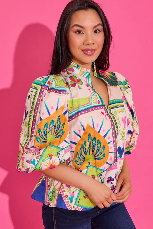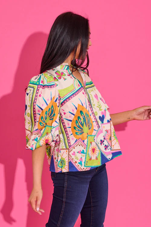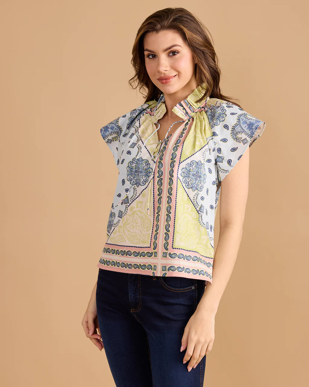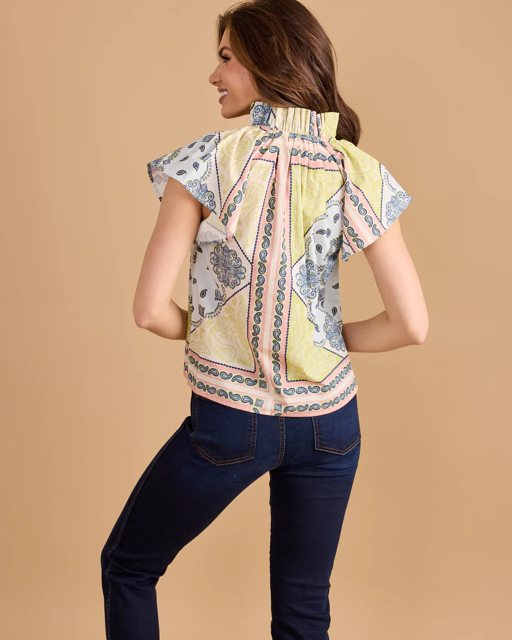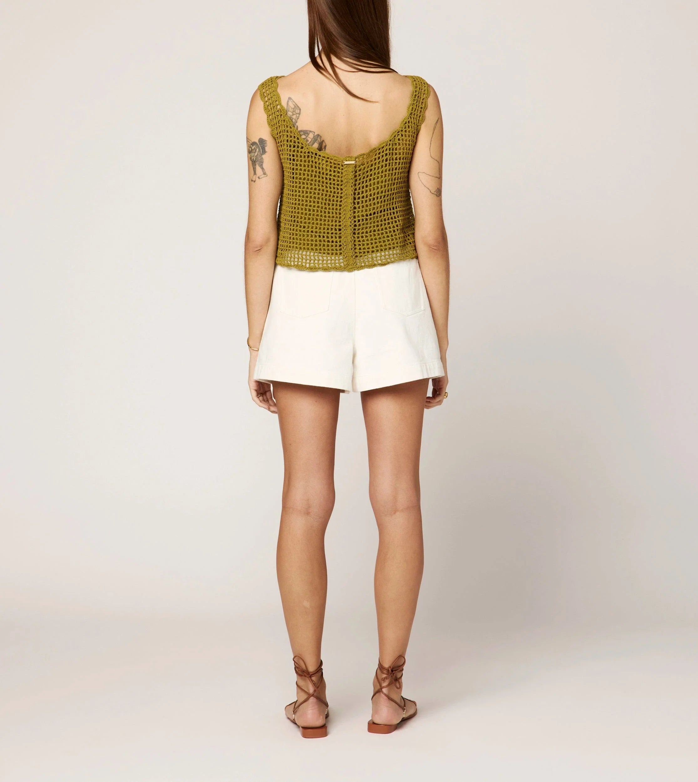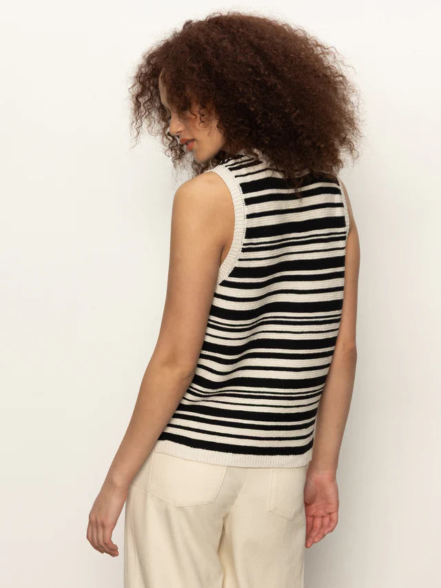 V-Neck Knitwear Tank - Muslin/Desert Lime Stripe