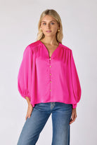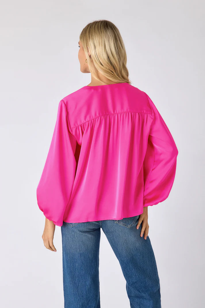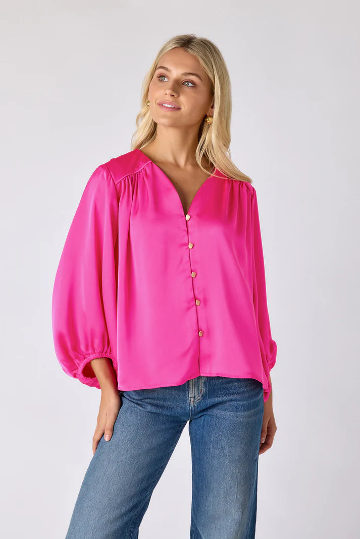 The Nellie Blouse is a true year-round staple. Designed with a flattering V-neckline, voluminous balloon sleeves, and brushed gold buttons, it’s an effortless go-to for every moment this season and beyond.