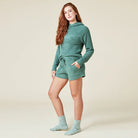 Solid Marshmallow Hoodie Short Set - Dusty Green