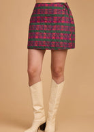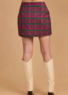 Introducing the Stevie skirt in our new print party plaid beet red! Pair this with the Hazel jacket and your favorite pair of boots to complete the look.