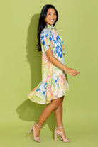 The Willa Dress in the print, Swan Lake, is a playful yet polished statement piece, featuring a feminine print and a flirty tiered mini skirt. Its sheer short sleeves and high neckline add a touch of elegance to this fun silhouette.