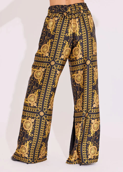 Our bestselling Penny Pant is back in our new print donatellot! The Penny is a pull on drawstring pant with side slits and an elastic waist.